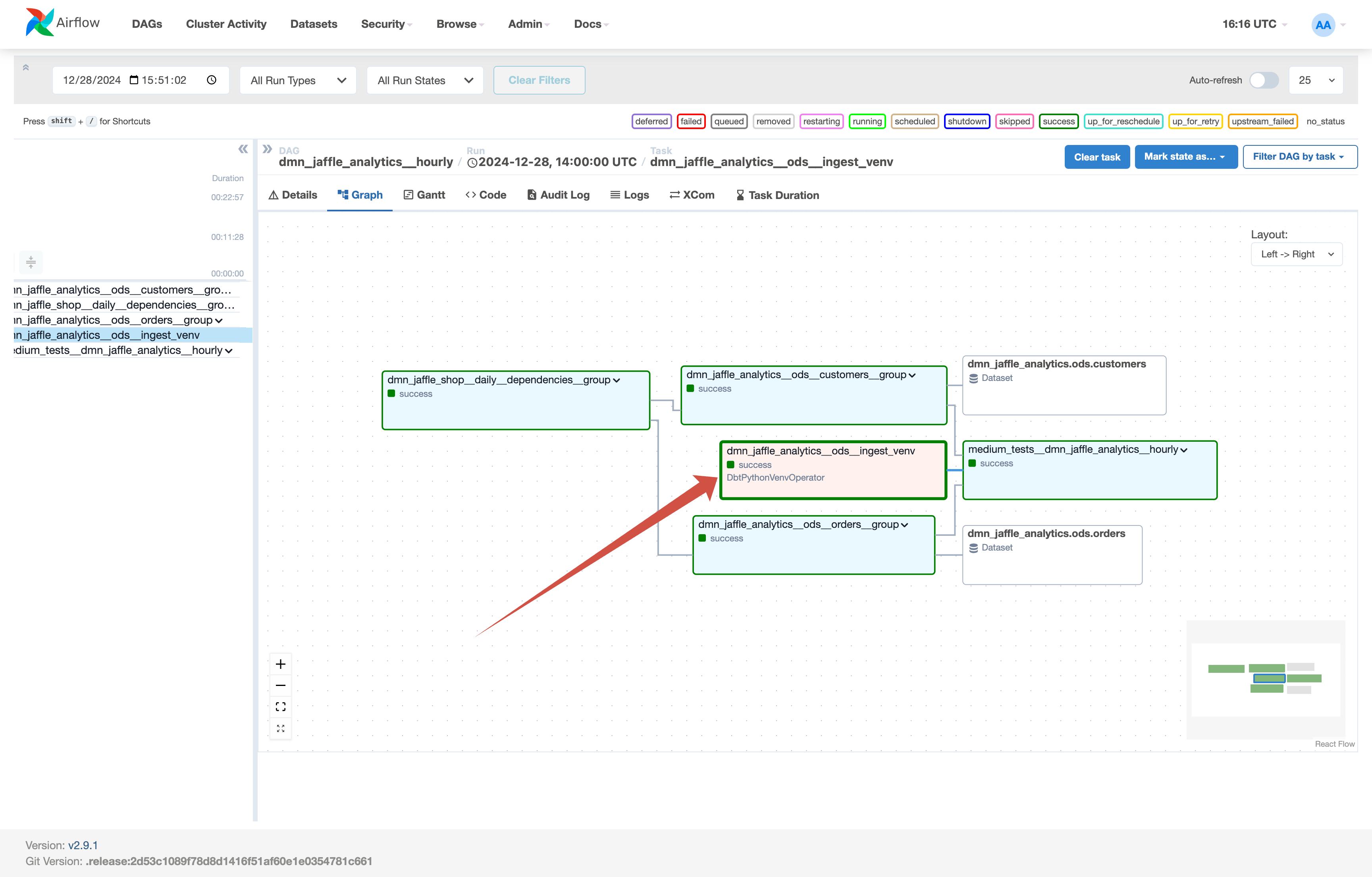 If everything is set up correctly, you can view the model in the dbt graph and run it will be run as a usual DAG component.